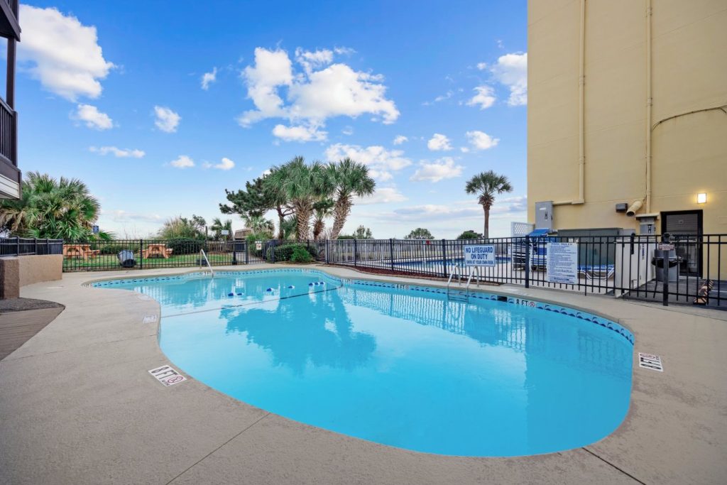 Just steps from the sand, the property features two convenient beach access points, an outdoor pool, and hassle-free parking for a smooth, relaxing stay.